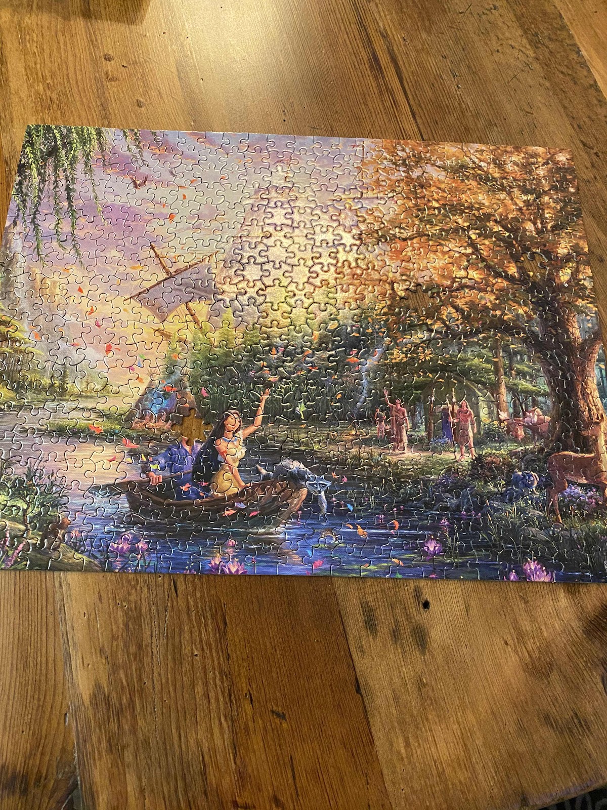 There are two pieces missing from the Pocohontas puzzle and at least two from the one I was making. An edge and part of Minnie’s face. I’ll finish it tomorrow and take it back to Kerry.